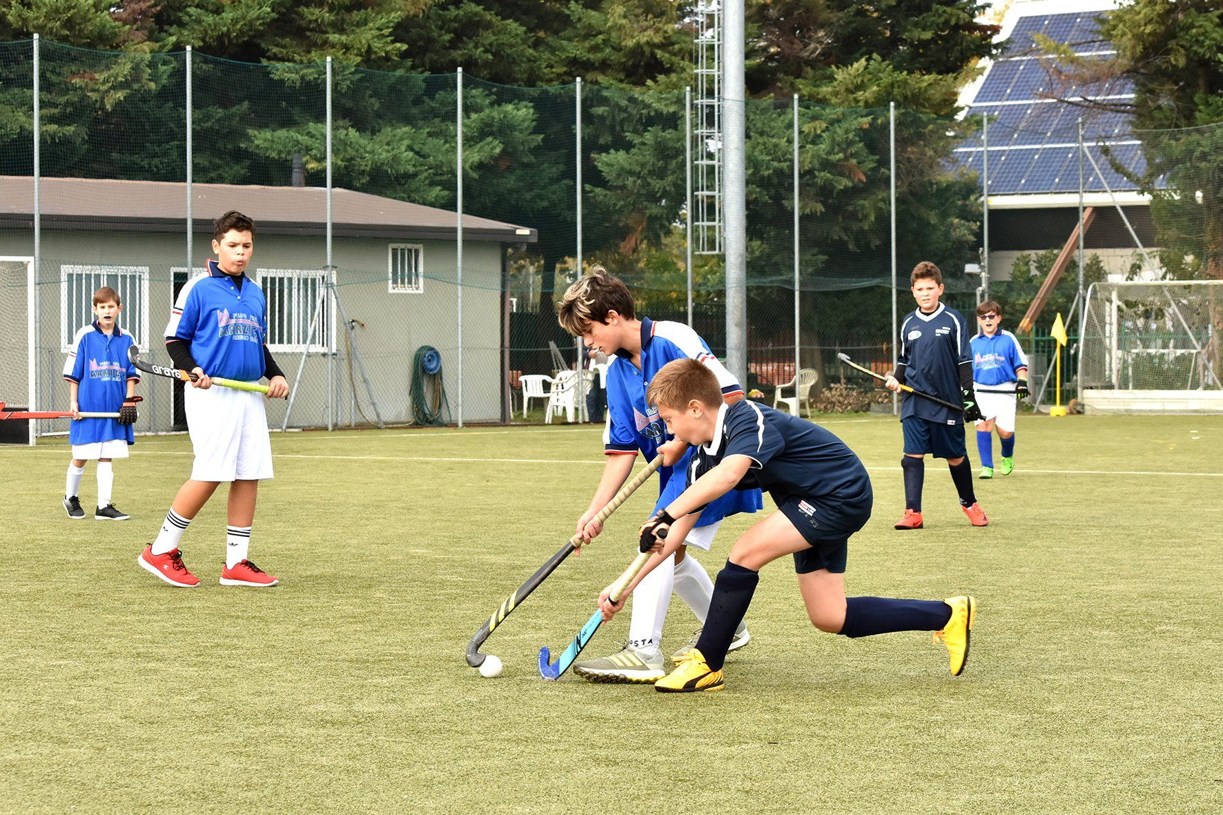 Movimenti con bastone a terra, accompagnamenti della palla e passaggi per iniziare a prendere confidenza con l’attrezzo. Poi si arriva all’attesissima partita; solitamente quattro squadre da cinque giocatori si alternano rapidamente sul campo. Partite brevi e ragazzi sempre pronti ad entrare in campo.