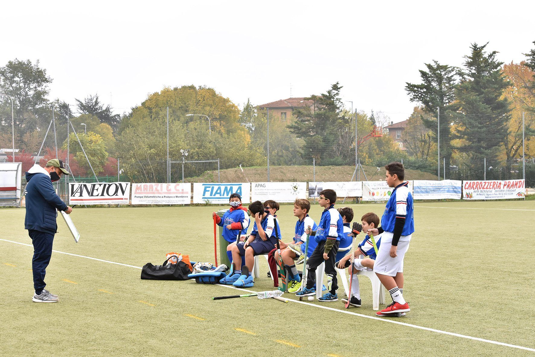 Movimenti con bastone a terra, accompagnamenti della palla e passaggi per iniziare a prendere confidenza con l’attrezzo. Poi si arriva all’attesissima partita; solitamente quattro squadre da cinque giocatori si alternano rapidamente sul campo. Partite brevi e ragazzi sempre pronti ad entrare in campo.